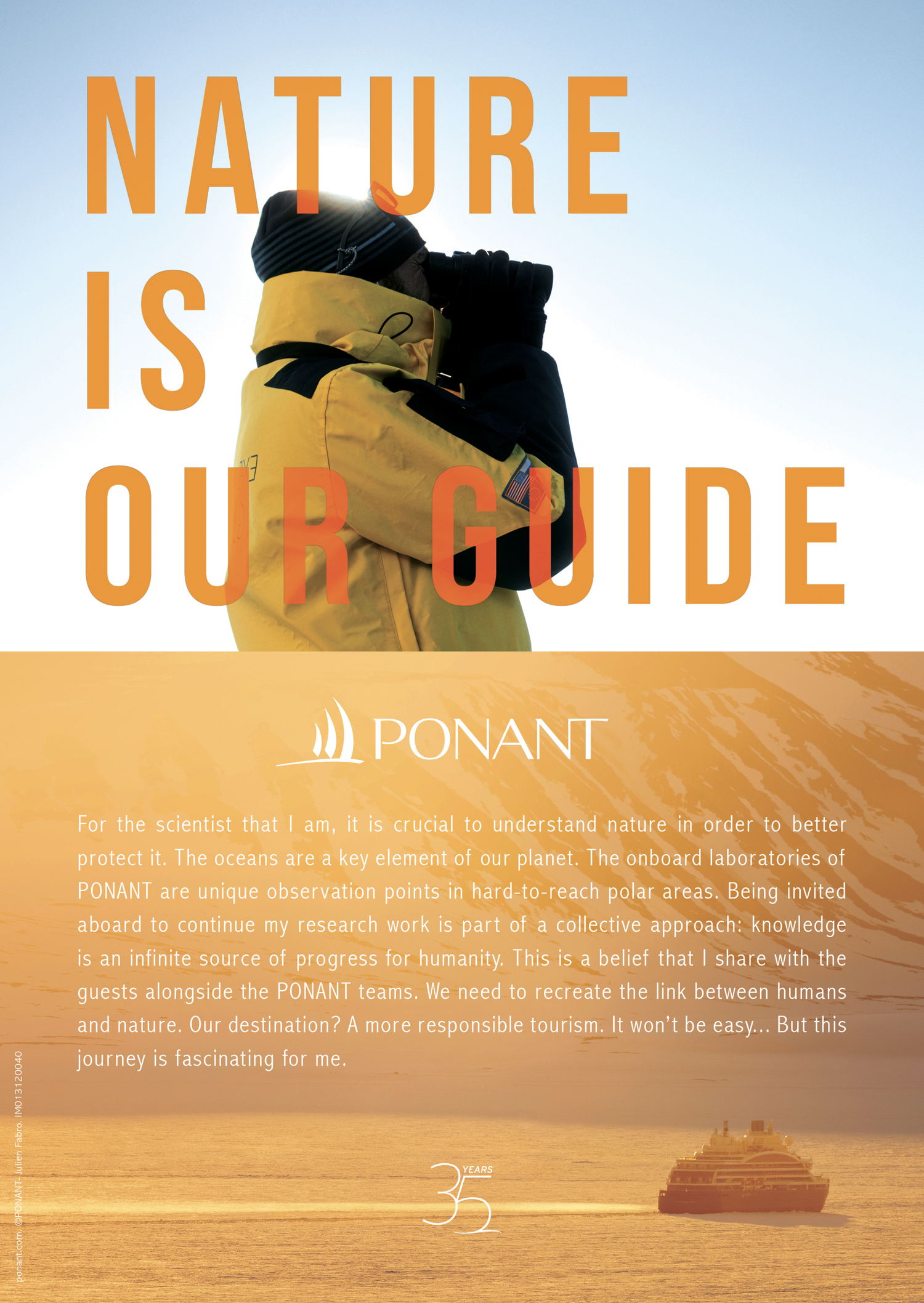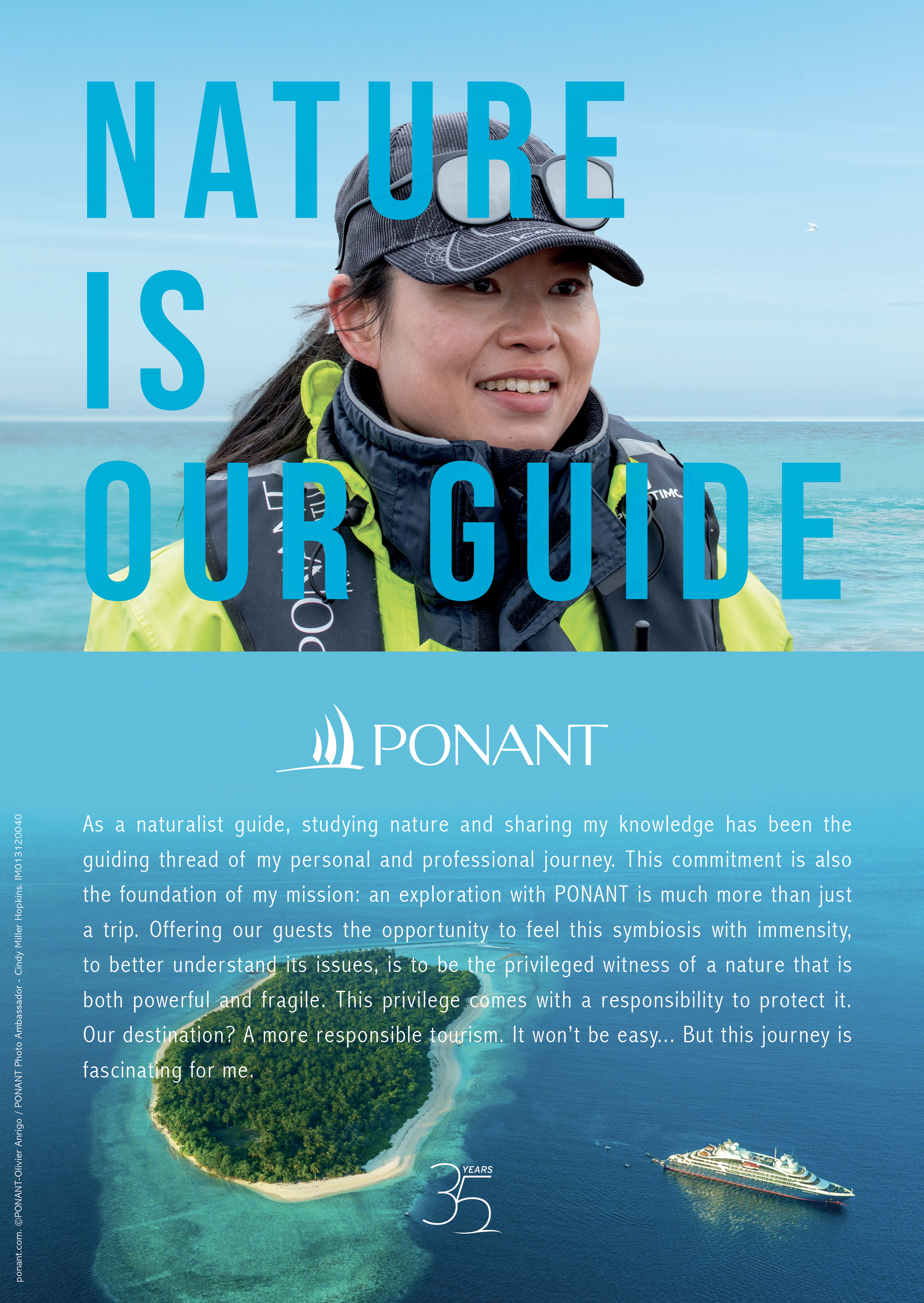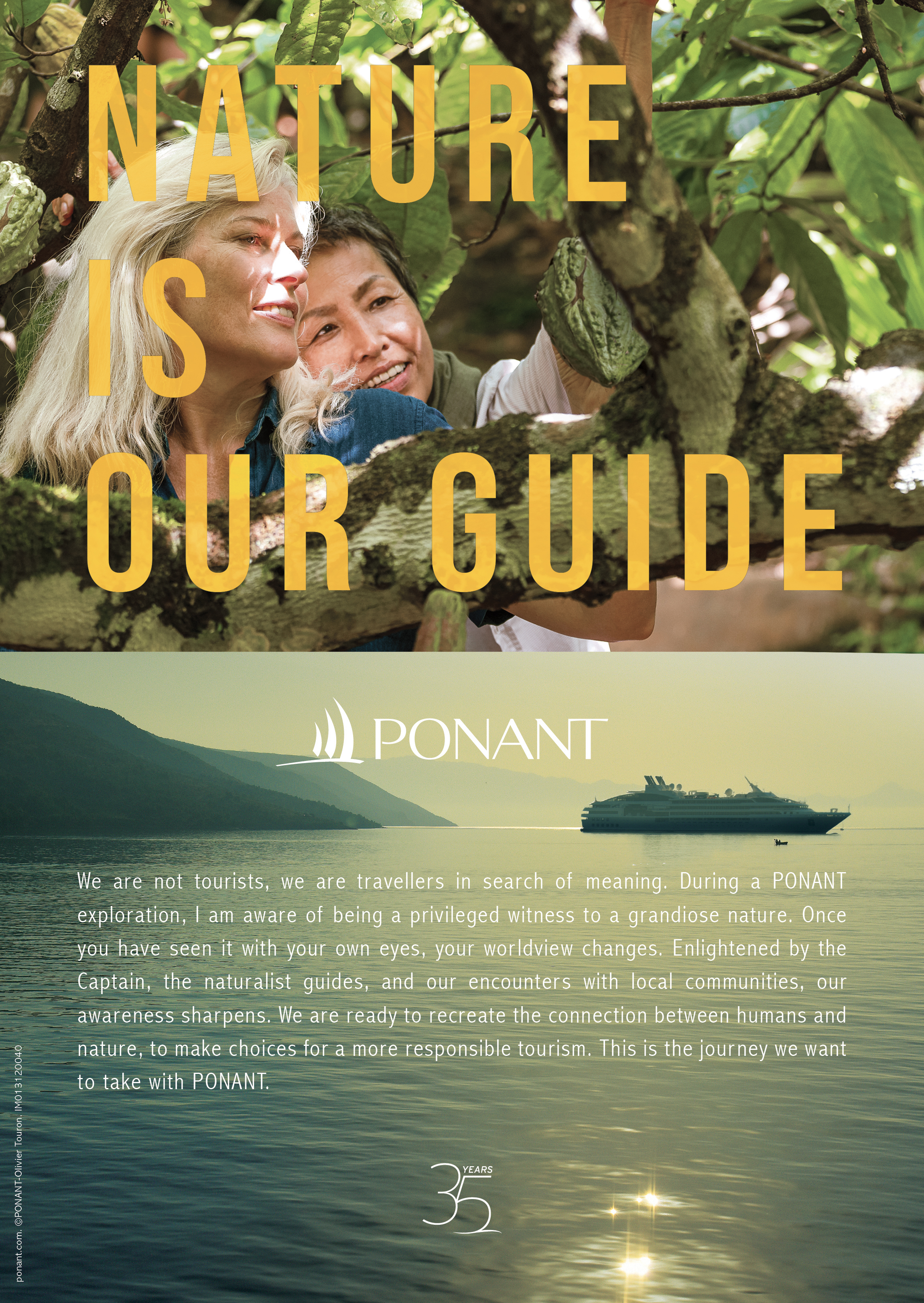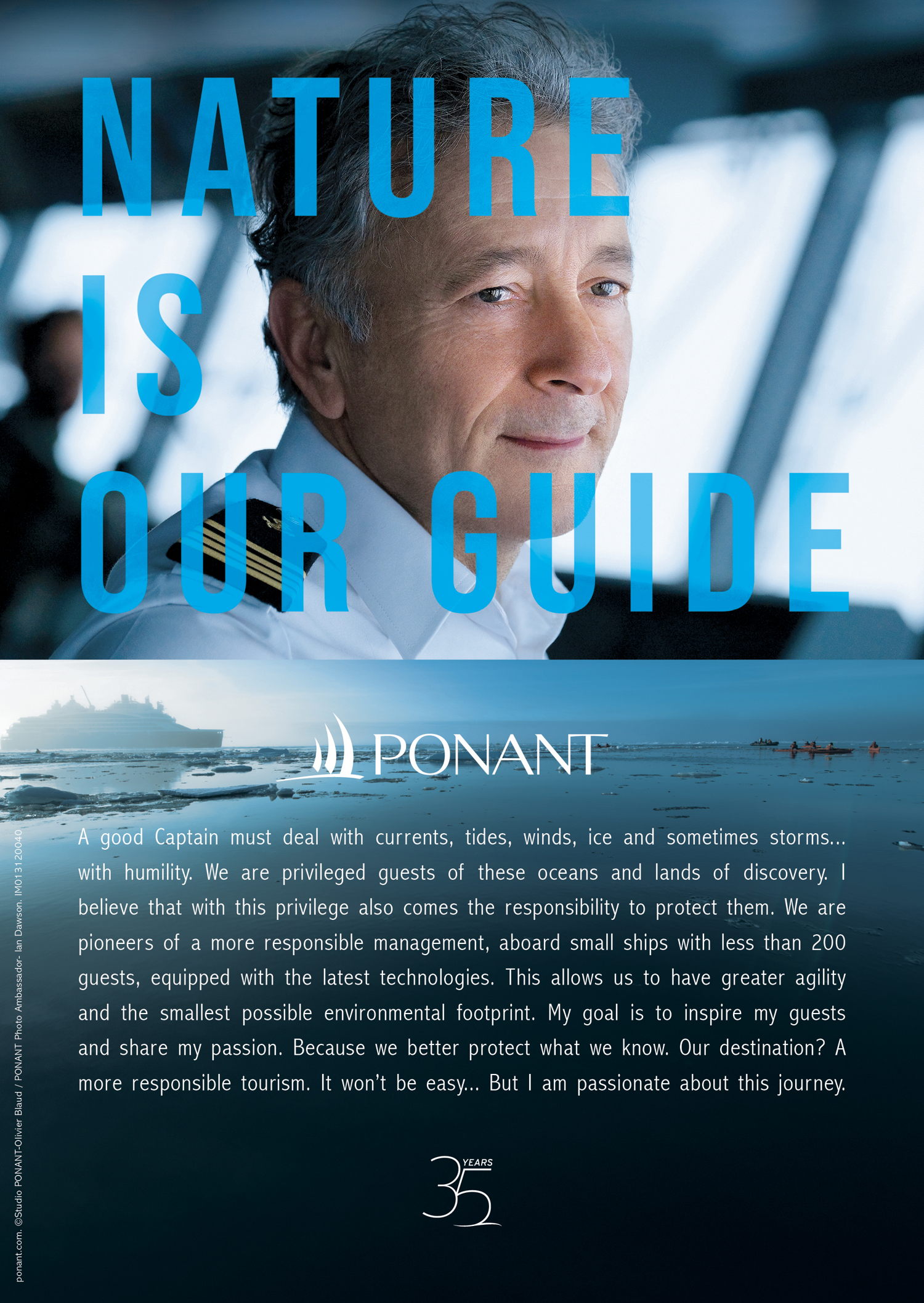 Hervé Gastinel, CEO of PONANT: “Nature is our guide is not just a campaign, it’s a commitment to a more sustainable and responsible tourism as being core values that guide everything we do. We believe travel has the power to transform individuals and communities. It is our responsibility to ensure this transformation is positive and lasting both for people and the planet. This mark our 35th anniversary and we wanted to pay tribute to those who support us in this approach.”